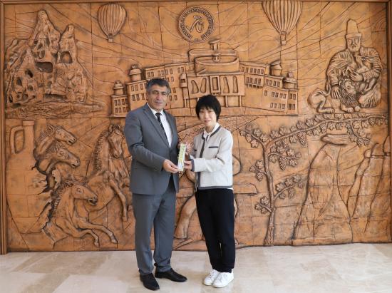 Nevşehir Hacı Bektaş Veli Üniversitesi (NEVÜ) ve Türk-Japon Vakfı iş birliğiyle “Afet Eğitimi ve Kültürel Değişim” etkinliği kapsamında NEVÜ’ye gelen Türk-Japon Vakfı Heyeti Rektör Prof. Dr. Semih Aktekin’i ziyaret etti