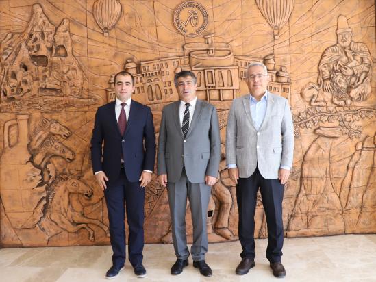T.C. Kültür ve Turizm Bakanlığı Nevşehir Müze Müdürü Gökhan Maskar, Nevşehir Hacı Bektaş Veli Üniversitesi (NEVÜ) Rektörü Prof. Dr. Semih Aktekin’i makamında ziyaret etti.