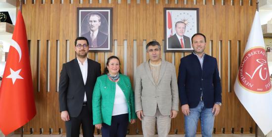Nevşehir Hacı Bektaş Veli Üniversitesi (NEVÜ) İktisadi ve İdari Bilimler Fakültesi (İİBF) Dekan V. Prof. Dr. Şükran Gürgör Tanç, beraberinde Dekan Yardımcıları Doç. Dr. İbrahim Yağlı ve Dr. Öğr. Üyesi Erdem Selman Develi ile birlikte Rektör Prof. Dr. Semih Aktekin’i makamında ziyaret etti.