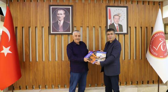 Nevşehir Hacı Bektaş Veli Üniversitesi (NEVÜ) Rektörü Prof. Dr. Semih Aktekin, Dünya Turizm Ltd. Şti. Sahibi Selami Küsmez’i üniversitede ağırladı. Rektörlük Makamında gerçekleşen ziyarette, bölge turizminin gelişimi ve üniversite-sektör iş birliğine dair görüş alışverişinde bulunuldu.