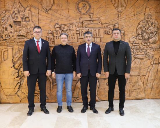 Türkiye Harp Malulü Gaziler, Şehit Dul ve Yetimleri Derneği Isparta Şube Başkanı Ali Savcı, beraberinde şehit babası ve Yönetim Kurulu Üyesi Hilmi Yılmaz ile Isparta Muhtarlar Derneği Başkanı Gökhan Büyükleblebi’den oluşan heyet, Nevşehir Hacı Bektaş Veli Üniversitesi (NEVÜ) Rektörü Prof. Dr. Semih Aktekin’i makamında ziyaret etti.