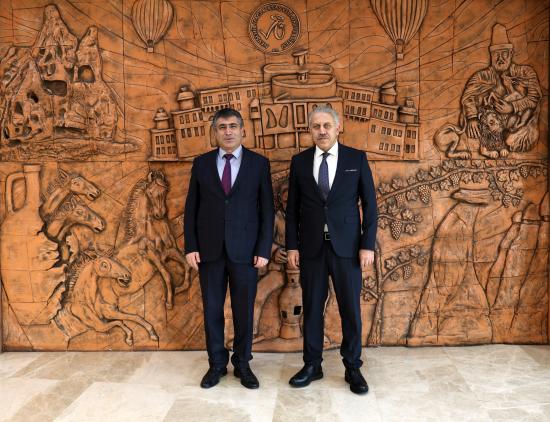 Nevşehir İl Emniyet Müdürü Serkan Karaman, Nevşehir Hacı Bektaş Veli Üniversitesi (NEVÜ) Rektörü Prof. Dr. Semih Aktekin’i makamında ziyaret etti.