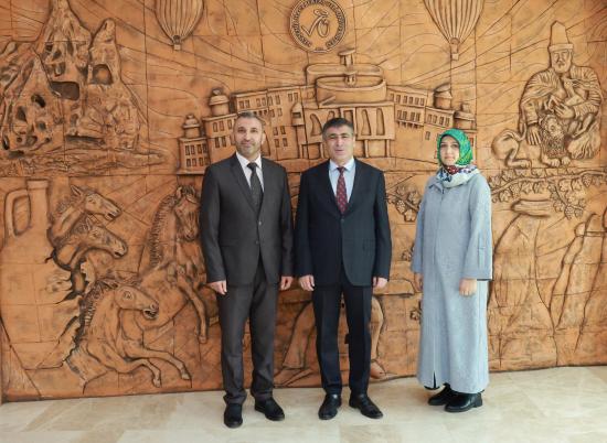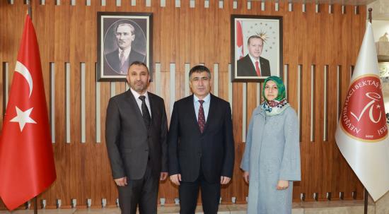 Nevşehir Hacı Bektaş Veli Üniversitesi (NEVÜ) Merkez Yerleşke'de, öğrenci kulüp ve topluluklarına tahsis edilen Camlı Köşk'te faaliyetlerini sürdüren Diyanet Genç Ofis Manevi Danışmanı ve Rehberi Duran Küçük ile Camlı Köşk çalışanı Habibe Erturan, NEVÜ Rektörü Prof. Dr. Semih Aktekin'e teşekkür ziyaretinde bulundu.