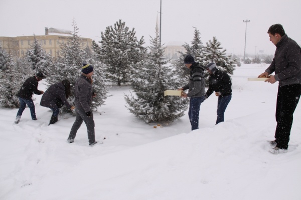 Üniversitemiz Öğrencilerinden Kar Yağışı Dolayısıyla Aç Kalan Yaban Hayvanlarına Yiyecek