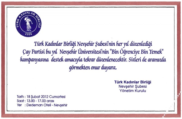 Türk Kadınlar Birliği'nden "Bin Öğrenciye Bin Yemek" Kampanyasına Destek Çay Partisi