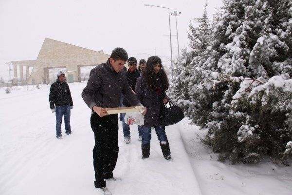 Özellikle kanatlı yaban hayvanlarının karla kaplı zeminlerde yiyecek ve su bulamaması nedeniyle açlık ve soğuktan donma tehlikesiyle karşı karşı olmaları nedeniyle böyle bir girişimde bulunduklarını belirten öğrenciler, “Nevşehir Üniversitesi Öğrenci Konseyi öğrencileri olarak geçtiğimiz günlerde kar yağışı nedeniyle aç kalan yaban hayvanları için üniversitemiz yerleşkesi içerisinde belli noktalara yaban hayvanlarının yiyebileceği türden ekmek ve yemek artıkları bırakmıştık. Dün başlayan yoğun kar yağışı nedeniyle ilimiz genelinde olduğu gibi üniversitemiz yerleşkesi içerisinde de etkisini gösterirken, bu en çok kanatlı hayvanları ve başı boş köpekleri etkiledi. Biz de öğrenci arkadaşlarla yine bir araya gelerek doğada bulunan yabani hayvanlar için üniversitemiz yemekhanesinden aldığımız ve karton kutular içerisine koyduğumuz ekmek ve yemek artıklarını ağaç altlarına, karın ulaşamadığı ve hayvanların rahatlıkla bularak yiyebilecekleri belirli noktalara bıraktık” diyerek bu zorlu hava şartlarından olumsuz olarak etkilenerek aç kalan hayvanlara karşı herkesi duyarlı olmaya çağırdılar.