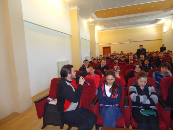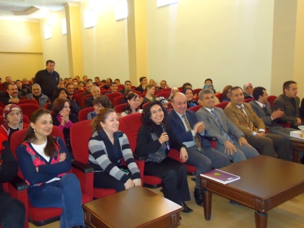 ‘Toplumsal Cinsiyet, Kadın-Erkek Eşitliği’ konularında sunumda bulunan Üniversitemiz İBBF Öğretim Üyesi Yrd. Doç. Dr. Leyla Kahraman, kadın-erkek eşitsizliğinin önce aile içinde başlayıp ikincil sosyalleşme kurumları tarafından toplumun her alanında pekiştirildiğini, bunu önlemek için öncelikle aile içerisinde çocuklar arasında cinsiyet ayrımı yapılmaması gerektiğini vurguladı. Aile içindeki eşitlikçi yaklaşımın toplumda da yaygınlaştırılmasında başta eğitim olmak üzere, tüm araçların bilinçli bir şekilde kullanılması gerektiğini belirten ve kadının toplum içerisindeki sorunlarının çözümünde cinsiyetçi yaklaşımın ortadan kaldırılmasının önemine değinen Kahraman, kadının toplumsal statüsünün yükseltilmesinde kız çocuklarının okullaşma oranının yükseltilmesinin atılacak en temel adımlardan biri olması gerektiğini söyledi.
