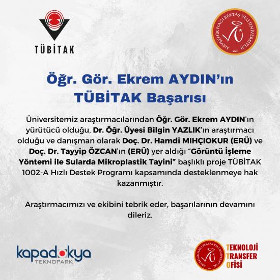 Nevşehir Hacı Bektaş Veli Üniversitesi (NEVÜ) öğretim elemanlarından Öğr. Gör. Ekrem Aydın’ın yürütücülüğünü üstlendiği proje, ‘TÜBİTAK 1002-A Hızlı Destek Programı’ kapsamında desteklenmeye hak kazandı.