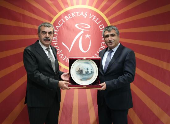 Program sonunda NEVÜ Rektörü Prof. Dr. Semih Aktekin, Millî Eğitim Bakanı Prof. Dr. Yusuf Tekin’e üniversitede kendilerini ağırlamaktan duyduğu memnuniyeti dile getirerek günün anısına plaket takdiminde bulundu.