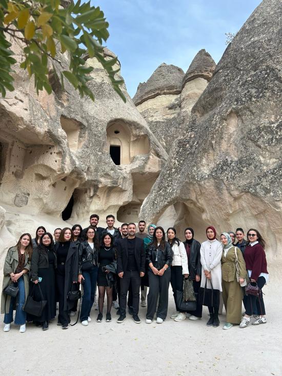 Kapadokya bölgesinin tarihi bir noktasında derslerini uygulamalı olarak işleyen öğrenciler; bir yandan Kapadokya bölgesi hakkında yeni bilgiler elde edinirken diğer yandan ise fotoğraflar çekilerek eğlenceli vakit geçirdiler.