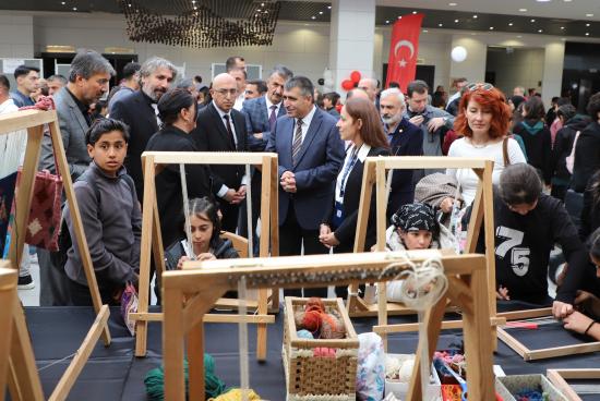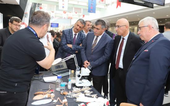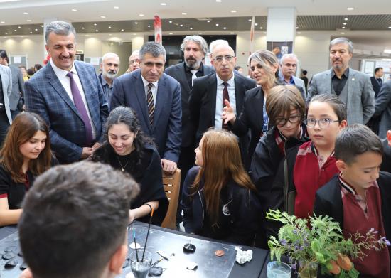 Rektör Prof. Dr. Semih Aktekin ve protokol üyeleri festival kapsamında açılan stantları gezerek projeler hakkında bilgi aldı.