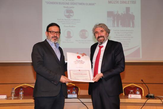 NEVÜ Eğitim Fakültesi Müzik Eğitimi Anabilim Dalı Türk Müziği Topluluğu tarafından sunulan müzik dinletisinin ardından açılış konuşmasını yapan Rektör Prof. Dr. Semih Aktekin, öğretmenliğin toplumsal açıdan taşıdığı kritik role dikkat çekti. Öğretmenliğin yalnızca bilgi aktarmayı değil; bir neslin değer dünyasını şekillendirmeyi, öğrencilerin potansiyelini keşfetmeyi ve onlara yaşam yolculuklarında rehberlik etmeyi içeren çok yönlü bir meslek olduğunu vurguladı.