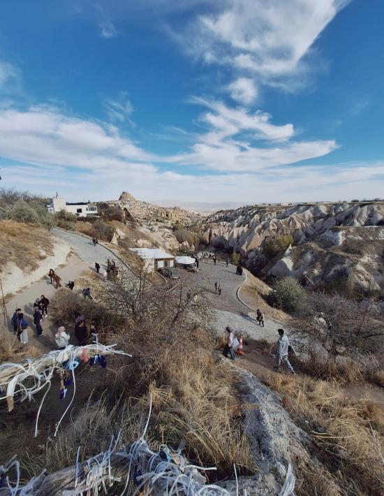 Kapadokya’nın doğal güzellikleriyle ön plana çıkan Güvercinlik Vadisi’nde gerçekleştirilen yürüyüşte katılımcılar, sonbaharın sıcak tonlarıyla bütünleşen vadide keyifli bir parkur deneyimi yaşadı. Doğanın huzur veren atmosferinde ilerleyen öğrenciler hem sosyal etkileşimlerde bulundu hem de sağlıklı yaşam farkındalığı kazandıracak etkinliklere katıldı.