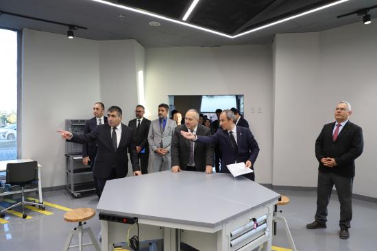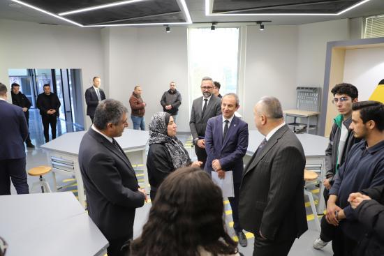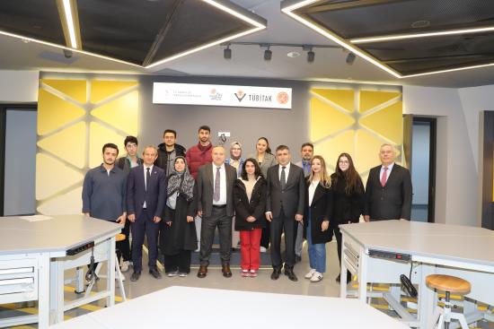 Vali Ali Fidan’a Millî Teknoloji Atölyesi’nin teknik altyapısı ve eğitim kapasitesine ilişkin bilgi veren Prof. Dr. Bayram Deviren; robotik kodlama, yapay zekâ, dijital tasarım ve veri analitiği odaklı uygulamalı çalışma alanlarının öğrenciler için güçlü bir öğrenme ortamı oluşturacağını aktardı. Ayrıca TEKNOFEST dâhil ulusal ve uluslararası teknoloji yarışmalarına hazırlanan ekiplerin burada ihtiyaç duyduğu teknik donanıma, eğitim desteğine ve danışmanlığa erişebileceğini belirtti.