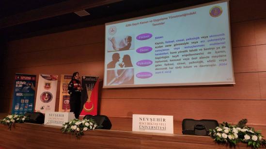 Nevşehir Hacı Bektaş Veli Üniversitesi (NEVÜ) ve Nevşehir İl Jandarma Komutanlığı işbirliğinde 5 Aralık Dünya Kadın Hakları günü faaliyeti gerçekleştirildi. NEVÜ Vali Şinasi Kuş Kültür ve Kongre Merkezi’nde gerçekleştirilen etkinliğe, Nevşehir İl Jandarma Komutanlığı Personel Ekibi ile birlikte NEVÜ Kadın Çalışmaları Uygulama ve Araştırma Merkezi (NÜKÇAM) Müdürü Dr. Öğretim Üyesi Işıl Acehan ve Müdür Yardımcısı Dr. Öğretim Üyesi Çağla Mavruk, akademik ve idari personel ile öğrenciler katıldı.