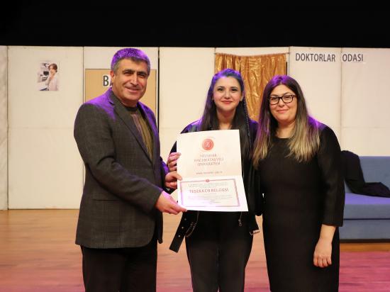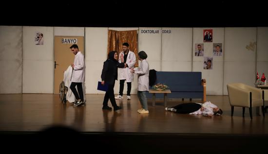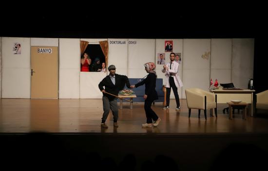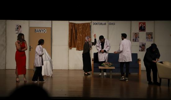 Eğitim Fakültesi öğretim üyesi Doç. Dr. Kübra Şengül’ün yönetmenliğinde hazırlanan oyunda; Semih Salor, Ramazan Aydıncı, Esra Küçük, Sümeyye Koç, Fatma Kara, Zehra Özdemir, Damla Duman, Tuğba Nur Ağa, Sudenaz Aydemir, Hüner Yalçın ve Leyla Coşkun performanslarıyla izleyicilerden tam not aldı.
