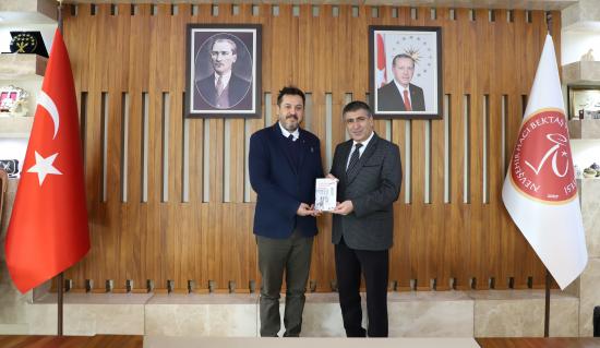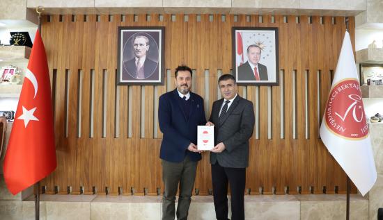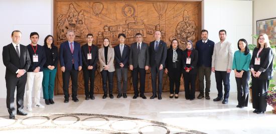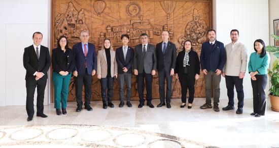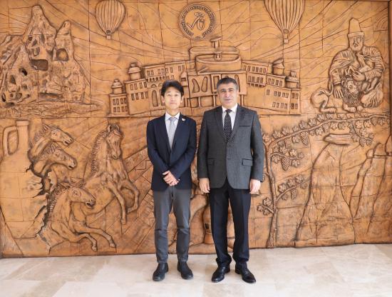 Japonya Uluslararası İşbirliği Ajansı (JICA) Türkiye Ofisi Başkanı Daisuke Watanabe ile JICA Türkiye Ofisi Kıdemli Danışmanı ve Türk Japon Vakfı 2. Başkanı Doç. Dr. Emin Özdamar, Nevşehir Hacı Bektaş Veli Üniversitesi (NEVÜ) Uluslararası İlişkiler Topluluğu (UİT) tarafından düzenlenen “Sürdürülebilir Bir Gelecek İçin Türkiye-Japonya İş Birliği: Japonya Uluslararası İşbirliği Ajansı (JICA) Deneyimler” başlıklı konferans öncesinde beraberindeki heyet ile birlikte, NEVÜ Rektörü Prof. Dr. Semih Aktekin’i makamında ziyaret etti.