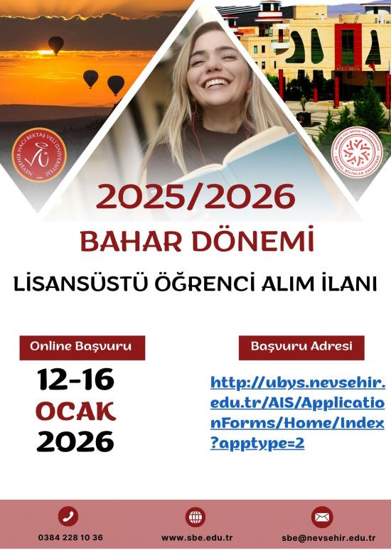 Başvuru sonuçları 20 Ocak 2026 tarihinde https://sbe.nevsehir.edu.tr web adresi üzerinden duyurulacaktır.