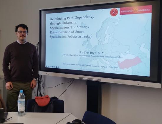 Nevşehir Hacı Bektaş Veli Üniversitesi (NEVÜ) İhtisaslaşma Koordinatörlüğü akademik personeli Öğr. Gör. Utku Eren Bağcı, Almanya’da bulunan Osnabrück Üniversitesi Coğrafya Enstitüsünde (Institute of Geography at Osnabrück University) akademik sunum gerçekleştirdi.