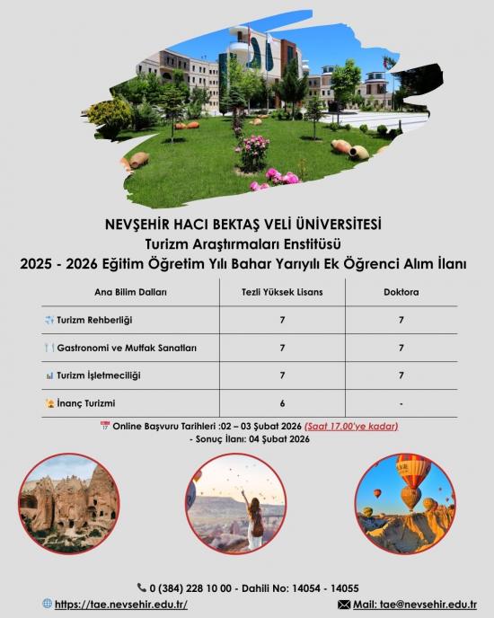 Turizm Araştırmaları Enstitüsü 2025 - 2026 Eğitim - Öğretim Yılı Bahar Yarıyılı Lisansüstü Ek Öğrenci Alımı İlanı