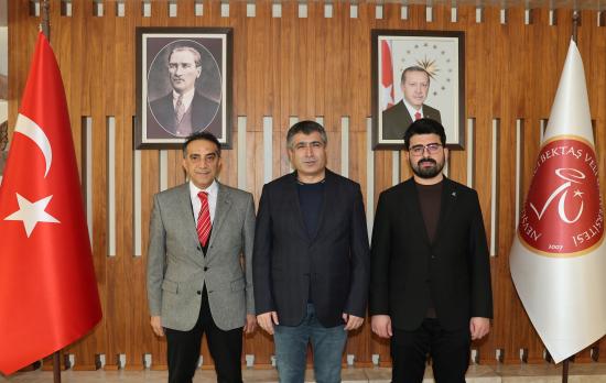 TÜGVA Nevşehir İl Temsilcisi Muhammed Furkan Nalçacıoğlu, NEVÜ Rektörü Prof. Dr. Semih Aktekin’i makamında ziyaret etti. NEVÜ Sürekli Eğitim Uygulama ve Araştırma Merkezi (NEVSEM) Müdürü Doç. Dr. Metin Doğan’ın da hazır bulunduğu ziyarette Nalçacıoğlu, TÜGVA tarafından yürütülen çalışmalar ile üniversite öğrencilerinin akademik, entelektüel ve kariyer gelişimlerine katkı sunmayı hedefleyen “İhtisas Akademi Projesi” hakkında Rektör Aktekin’e bilgi verdi. Nalçacıoğlu ayrıca, üniversiteli gençlere yönelik çalışmalara verdikleri destek dolayısıyla Rektör Aktekin ve üniversite yönetimine teşekkür etti.