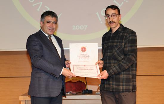 Toplantının sonunda Rektör Aktekin, son iki yıl içerisinde emekli olan idari personellerden Hatice Topaçlı’ya plaket ve teşekkür belgesi takdim etti. Ayrıca üniversitenin Hoca Ahmed Yesevi Kütüphanesi’nde 2025 yılı içerisinde en fazla kitap ödünç alan idari personeller Alican Yapar, Nazlı Çalıkkılıç ve Mehmet Sallanbaş ile T.C. Gençlik ve Spor Bakanlığı tarafından 81 ilde düzenlenen Kamu Spor Oyunları Erkek ve Kadın Masa Tenisi Müsabakaları’na üniversiteyi temsilen katılarak derece elde eden Mustafa Büyükkurutlu, Alper Arıbaş, Nur Yalçınkaya ve Rukiye Parlar’a teşekkür belgesi verdi.