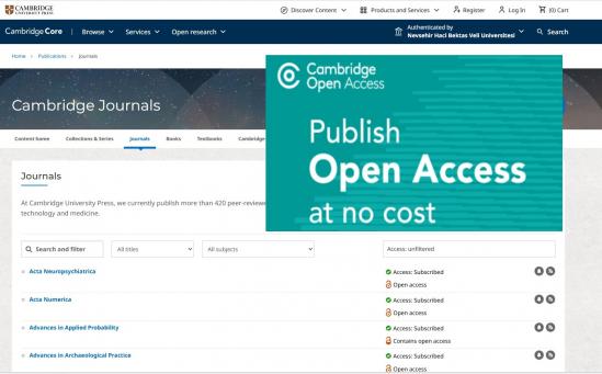 - Erişim: Türkiye'deki tüm EKUAL üyesi kurumlar, Cambridge Journals Online (CJO) "Tam Paket" içeriğine erişim sağlamaya devam edecektir.