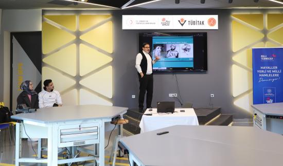 Prof. Dr. Bayram Deviren konuşmasında, Milli Teknoloji Atölyesi bünyesinde gerçekleştirilen bilim söyleşilerinin gençlerin bilimsel düşünceyle buluşması açısından önemli bir rol üstlendiğini ifade etti. Günümüz dünyasında teknolojiyi yalnızca tüketen değil aynı zamanda üreten gençlere duyulan ihtiyacın her geçen gün arttığını vurgulayan Deviren, Türkiye’nin bilim ve teknoloji alanındaki hedeflerine ulaşabilmesi için gençlerin araştırma, üretim ve girişimcilik süreçlerinde daha aktif rol almalarının büyük önem taşıdığını belirtti. Milli Teknoloji Atölyeleri gibi ortamların gençlerin fikirlerini projeye dönüştürmelerine imkân sağlayan önemli merkezler olduğunu da sözlerine ekledi.