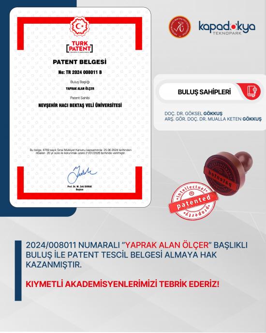 Nevşehir Hacı Bektaş Veli Üniversitesi, öğretim üyelerinin bilimsel araştırma ve inovasyon çalışmalarını desteklemeye devam ederek, ülkemizde tarım ve bitki bilimleri alanındaki teknolojik gelişmelere katkı sunmayı sürdürüyor.
