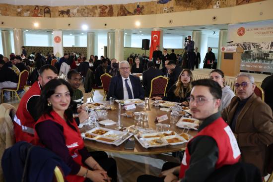 Nevşehir İl Protokolü ve hayırsever iş insanları, Nevşehir Hacı Bektaş Veli Üniversitesi (NEVÜ)’de “İftar Sofrasında Öğrencilerimizle Ramazan Sevincini Paylaşıyoruz” temasıyla düzenlenen programda öğrencilerle bir araya geldi.