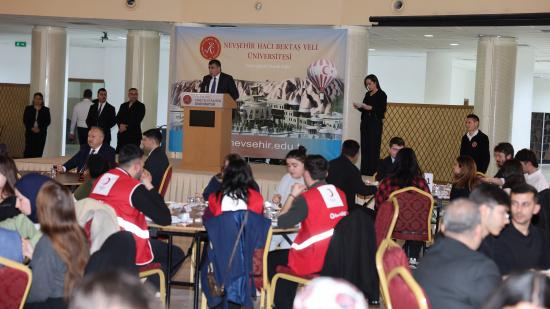 Programda konuşan NEVÜ Rektörü Prof. Dr. Semih Aktekin, dört yıldır Nevşehir Valiliği himayesinde ve NTSO’nun öncülüğünde hayırsever iş insanlarının katkılarıyla öğrencilere ücretsiz iftar programı düzenlediklerini belirterek, her yıl artan katılımla bu yıl günlük üç bin kişiye ulaşıldığını ifade etti. Yapılan hayırların gençler tarafından bilinmesinin önemine değinen Aktekin, bu sayede öğrencilerin yaşadıkları şehirde kendilerini düşünen ve destekleyen insanların varlığını daha güçlü şekilde hissettiklerini vurguladı.