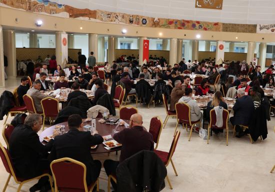 NEVÜ’nün Ramazan ayı boyunca, Nevşehir Valiliği koordinasyonunda ve Nevşehir Ticaret ve Sanayi Odası (NTSO) ile hayırseverlerin katkılarıyla gerçekleştirdiği iftar programı, üniversitenin Tafana Aşçılık ve İkram Hizmetleri Uygulama Tesisleri’nde düzenlendi. Programa; Nevşehir Valisi Ali Fidan, NEVÜ Rektörü Prof. Dr. Semih Aktekin, NTSO Başkanı M. Arif Parmaksız, Nevşehir Adalet Komisyonu Başkanı Ali İhsan Tabak, Nevşehir İl Emniyet Müdürü Serkan Karaman, Nevşehir İl Milli Eğitim Müdürü Yusuf Yazıcı, Nevşehir Gençlik ve Spor İl Müdürü Mustafa Hakan Keskin, il protokol üyeleri, hayırsever iş insanları ve çok sayıda öğrenci katıldı.
