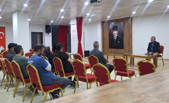 Program çerçevesinde üç farklı başlıkta eğitim düzenlendi. “Yaşlılara Psikososyal Destek Eğitimi”, SHMYO Öğr. Gör. Dr. Abdurrahim Yalçın tarafından verildi. Eğitimde; yaşlı bireylerin psikososyal ihtiyaçları, iletişim süreçleri, duygusal destek mekanizmaları ve bakım sürecinde dikkat edilmesi gereken hususlar ele alındı. Katılımcılara güncel ve uygulamaya yönelik bilgiler aktarılırken, örnek olaylar üzerinden değerlendirmeler yapıldı.
