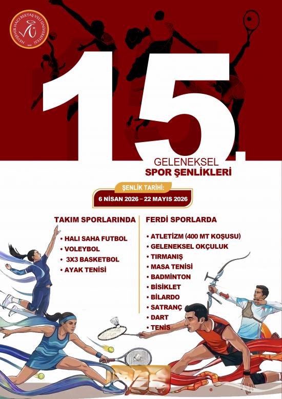 Spor Dostu Kampüs projesi kapsamında NEVÜ’de eğitim gören öğrencilere, akademik ve idari personele moral ve motivasyon olması, ruh ve beden sağlığı ile farkındalık oluşturmak amacıyla düzenlenen spor şenliği takım sporlarında Halı Saha Futbol, 3x3 Basketbol, Voleybol, Ayak Tenisi ve ferdi sporlardan Masa Tenisi, Tenis, Geleneksel Okçuluk, Atletizm, Badminton, Satranç, Dart, Bilardo, Bisiklet, Tırmanış olmak üzere 14 spor dalında ve her dalda Kadın Öğrenci/Erkek Öğrenci/Kadın Personel/Erkek Personel kategorilerinde gerçekleştirilecek Üniversitemiz 15.Geleneksel Spor Şenliklerinde 1.141 sporcu mücadele verecek.