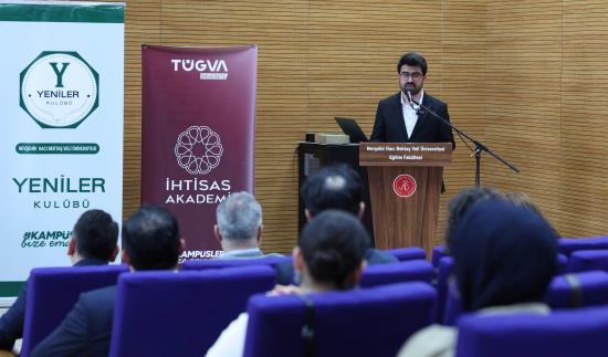 Program, TÜGVA’nın faaliyetlerini tanıtan video gösterimi ile başladı. Açılışta konuşan TÜGVA İl Temsilcisi Nalçacıoğlu, İhtisas Akademi’nin gençlerin akademik bilgi ile saha tecrübesini buluşturduğu bir eğitim modeli sunduğunu ifade ederek, farklı disiplinlerden gençlerin ortak bir vizyon etrafında buluşmasının önemine dikkat çekti.