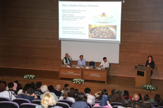 “Yemek ve Ritüeller” başlığıyla konuşan Doç. Dr. Tuğba Gönel Sönmez ise sunumunda yemek kültürü ve ritüellerin toplumsal hafızadaki yerine değindi. Gastronominin yalnızca bir beslenme biçimi değil, aynı zamanda kültürel kimliğin ve toplumsal değerlerin taşıyıcısı olduğunu ifade eden Sönmez, ritüel yemeklerin doğumdan ölüme kadar hayatın pek çok evresinde önemli bir yer tuttuğunu belirterek, bu birikimin korunarak gelecek nesillere aktarılmasının önemine dikkat çekti.