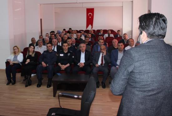 NEVÜ Gülşehir SBMYO Konferans Salonu’nda gerçekleştirilen seminere, Gülşehir Belediye Başkanı Erkan Çiftci ile ilçedeki kamu kurum ve kuruluşlarının yöneticileri ve personeli katıldı.
