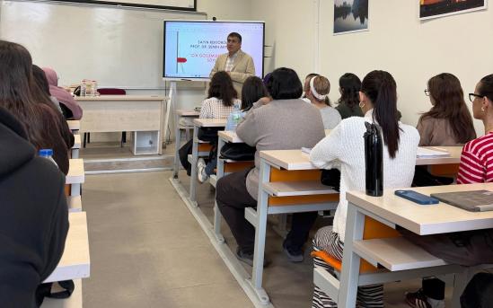 Çin Kültürü dersinde öğrencilerle bir araya gelen Rektör Aktekin, kısa süre önce gerçekleştirdiği Çin ziyaretine çeşitli üniversitelerle yaptığı görüşme ve temaslardan edindiği izlenimleri paylaşan Prof. Dr. Aktekin, Çin’in kültürü, yönetim sistemi, dini inanışları, toplumsal yapısı, kültürel değerleri ve mevcut konjonktürüne değindi. Çin toplumunun tarih boyunca koruduğu geleneksel değerlerle modernleşme sürecini nasıl dengelediğini örneklerle açıklayan Aktekin, Çin’in ekonomik kalkınması, eğitim politikaları ve kültürel diplomasi anlayışı üzerinde de durdu.