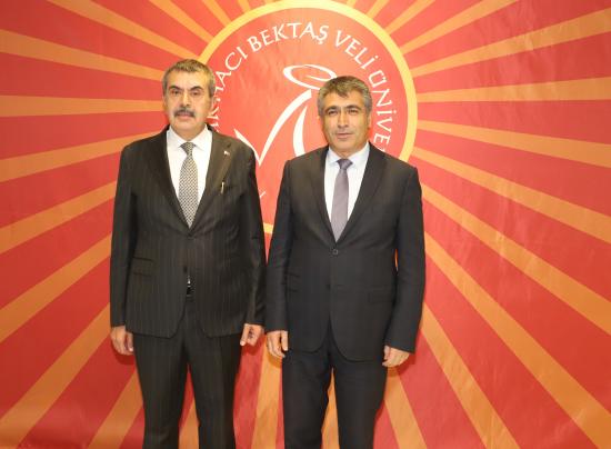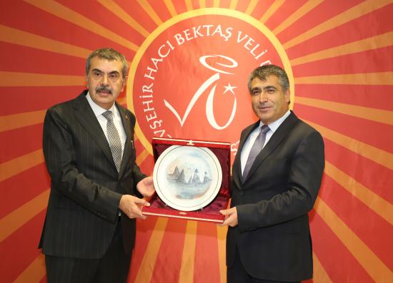 Program sonunda NEVÜ Rektörü Prof. Dr. Semih Aktekin, Millî Eğitim Bakanı Prof. Dr. Yusuf Tekin’e üniversitede kendilerini ağırlamaktan duyduğu memnuniyeti dile getirerek günün anısına plaket takdiminde bulundu.