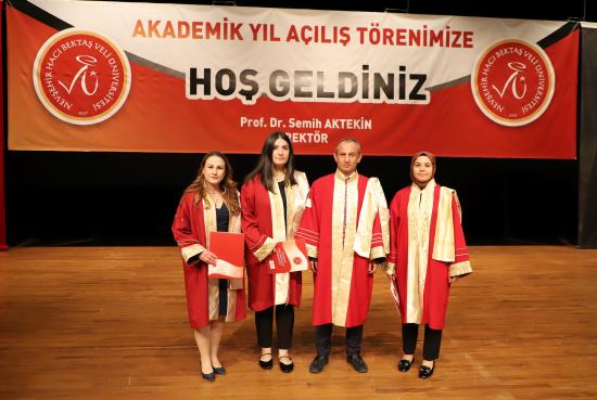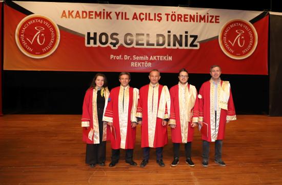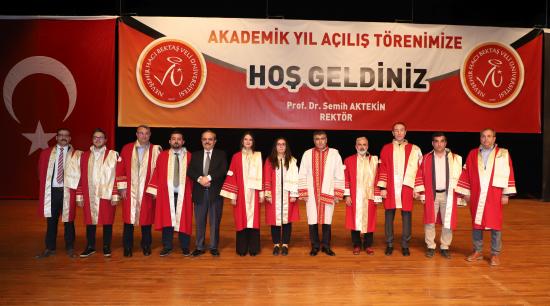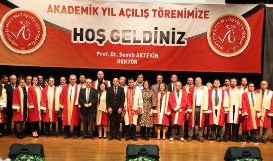 NEVÜ Akademik Yılı Açılış programı, 2024-2025 yıllarında akademik yükselme göstererek profesör ünvanı alan ve akademik yükselme göstererek doçent ünvanı alan öğretim üyelerine Rektör Prof. Dr. Semih Aktekin tarafından cübbelerinin giydirilmesi ve toplu fotoğraf çekimi ile son buldu.