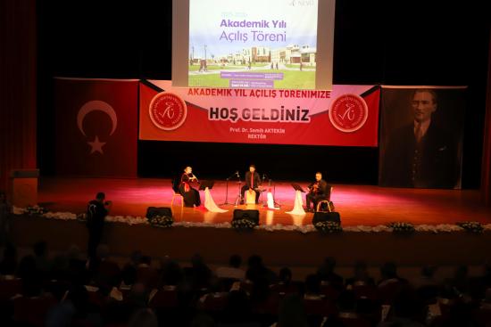 Tören öncesi İsrail saldırısında hayatını kaybeden tüm Filistinli şehitler için Kur’an-ı Kerim tilaveti okunarak, dualar edildi. Saygı duruşu ve İstiklal Marşı’nın okunması ve NEVÜ tanıtım filminin gösteriminin ardından sahne alan NEVÜ Güzel Sanatlar Fakültesi öğretim üyesi Klarnet Sanatçısı Doç. Anıl Çelik eşliğindeki AnKaAs üçlüsünün müzik dinletisi törene renk kattı.