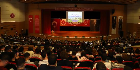 NEVÜ 2025-2026 Akademik Yılı açılış töreni kapsamında, Fatih Sultan Mehmet Vakıf Üniversitesi Öğretim Üyesi ve Türk Maarif Ansiklopedisi Bilim Kurulu Başkanı Prof. Dr. Azmi Özcan tarafından “Tarih, Kimlik ve Gazze’nin Dersleri” konulu “İlk Ders” programı gerçekleştirildi.