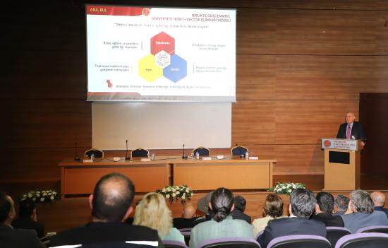 Üniversitenin eğitim-öğretim, araştırma-geliştirme ve toplumsal katkı faaliyetlerine yönelik stratejik kararların değerlendirilmesi amacıyla düzenlenen toplantıda, üniversite ile kamu kurumları, özel sektör ve sivil toplum kuruluşları arasındaki iş birliğini güçlendirmeye yönelik görüş alışverişinde bulunuldu.