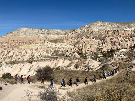 Kızılçukur Vadisi’nden başlayarak Çavuşin Kalesi’nde son bulan yürüyüşte katılımcılar, bölgenin tarihi dokusu ve doğal güzellikleri eşliğinde keyifli ve macera dolu anlar yaşadı.