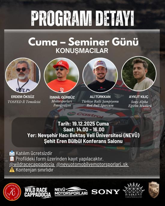 Seminer + Pist Deneyimi + Profesyonel Çekim NEVÜ Motorsporları, SONY ve Wild Race Cappadocia iş birliğiyle, motorsporları dünyasını fotoğrafçılıkla buluşturan özel bir programa davetlisiniz.