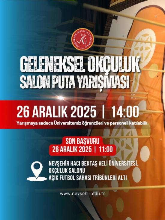 - Yarışma 26 Aralık 2025 Cuma günü saat 14:00’da NEVÜ Okçuluk Salonu’nda yapılacaktır.