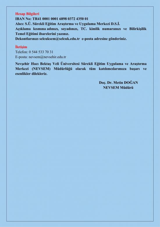Nevşehir Hacı Bektaş Veli Üniversitesi Sürekli Eğitim Uygulama ve Araştırma Merkezi (NEVSEM) Müdürlüğü olarak tüm katılımcılarımıza başarı ve esenlikler dilekleriz.