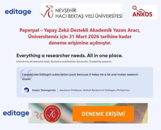 Paperpal – Yapay Zekâ Destekli Akademik Yazım Aracı, üniversitemiz için 31 Mart 2026 tarihine kadar deneme erişimine açılmıştır.