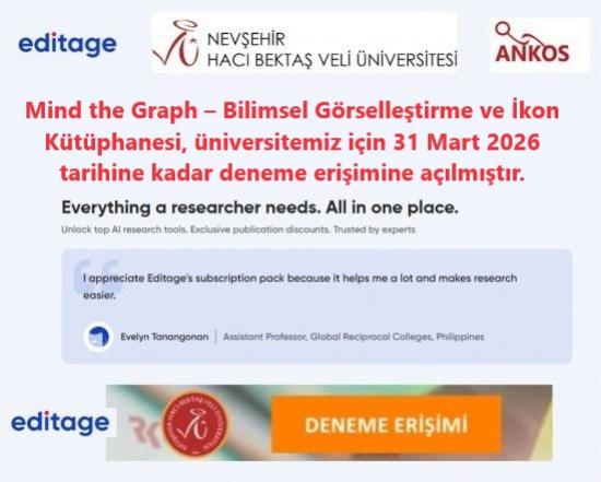 Editage Plus paketi kapsamında yer alan Mind the Graph – Bilimsel Görselleştirme ve İkon Kütüphanesi, tüm kurumlarımız için 31 Mart 2026 tarihine kadar deneme erişimine açılmıştır.