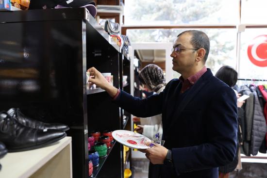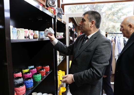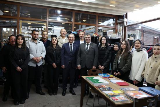 Katılımcılar ile birlikte mağazanın açılışını gerçekleştiren Rektör Aktekin, açılışın ardından Kampüs Mağazası’nı gezerek mağaza görevlilerinden bilgi aldı.